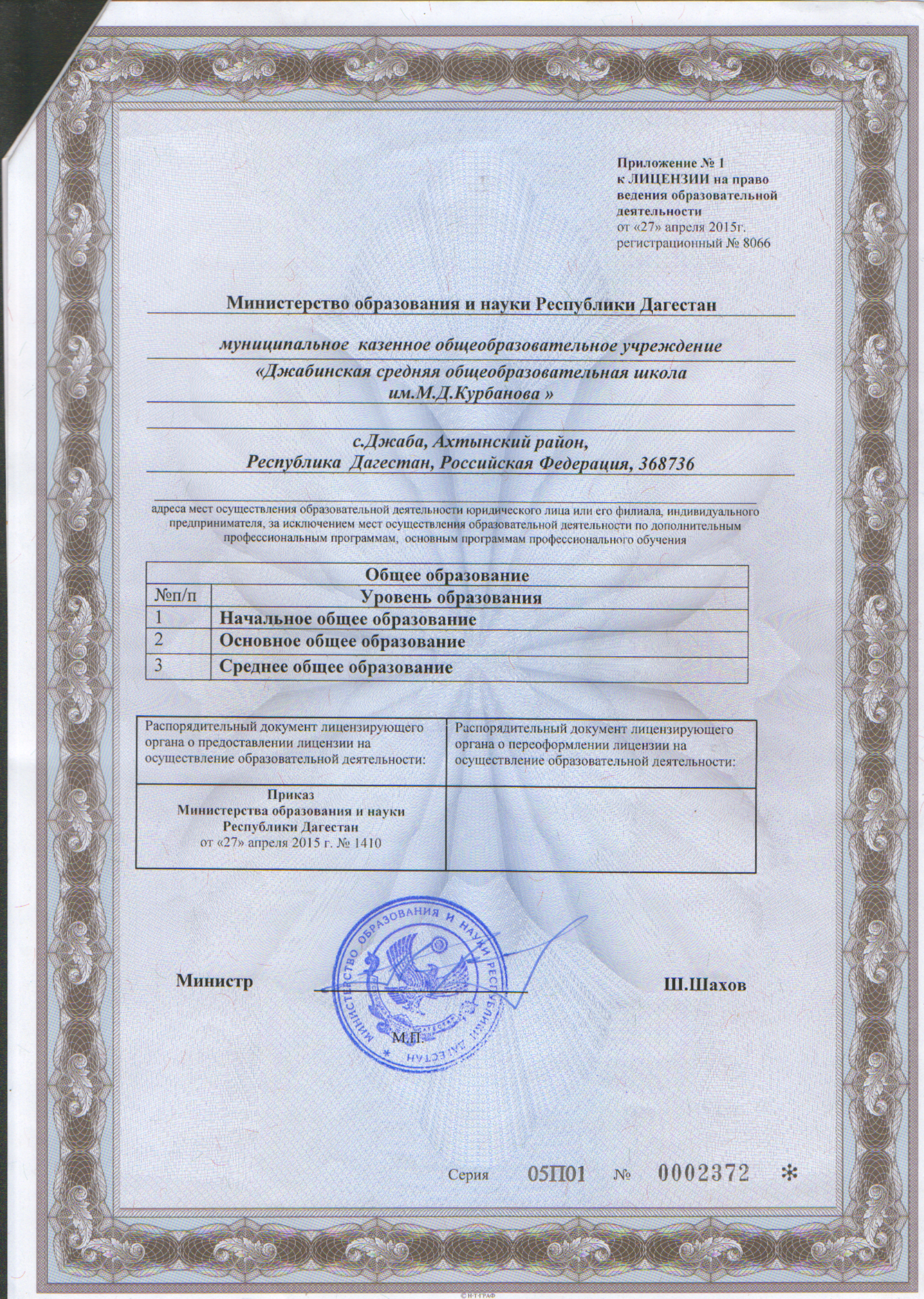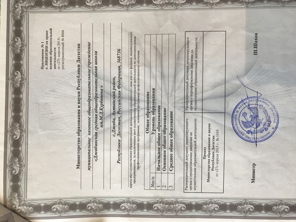 МКОУ " Джабинская СОШ им.М.Д.Курбанова" с.Джаба, Ахтынского р. РД